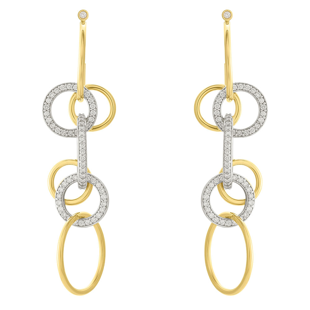 Brincos de ouro amarelo e ouro branco 18K com diamantes - Longo - Coleção Oitenta