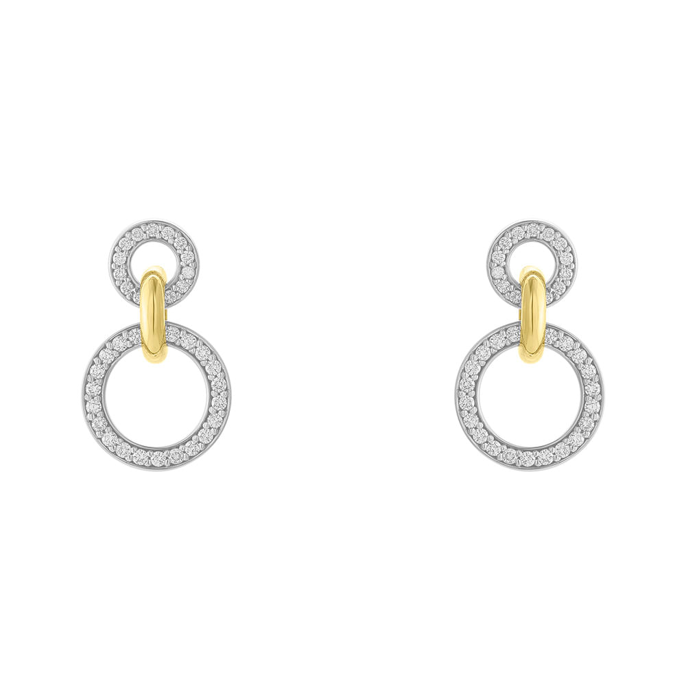 Brincos de ouro amarelo e ouro branco 18K com diamantes - Menor - Coleção Oitenta